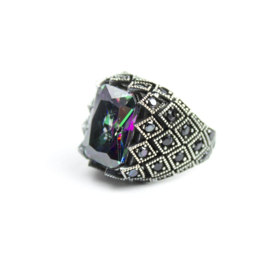 خاتم فضة عيار 925 تركي حجر شفاف بألوان مميزة