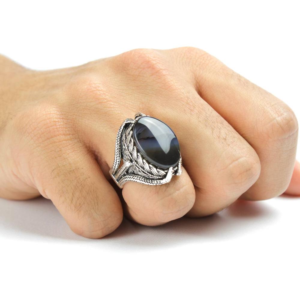 حجر عقيق أسود ( الشكل يختلف قليلا من خاتم لآخر)