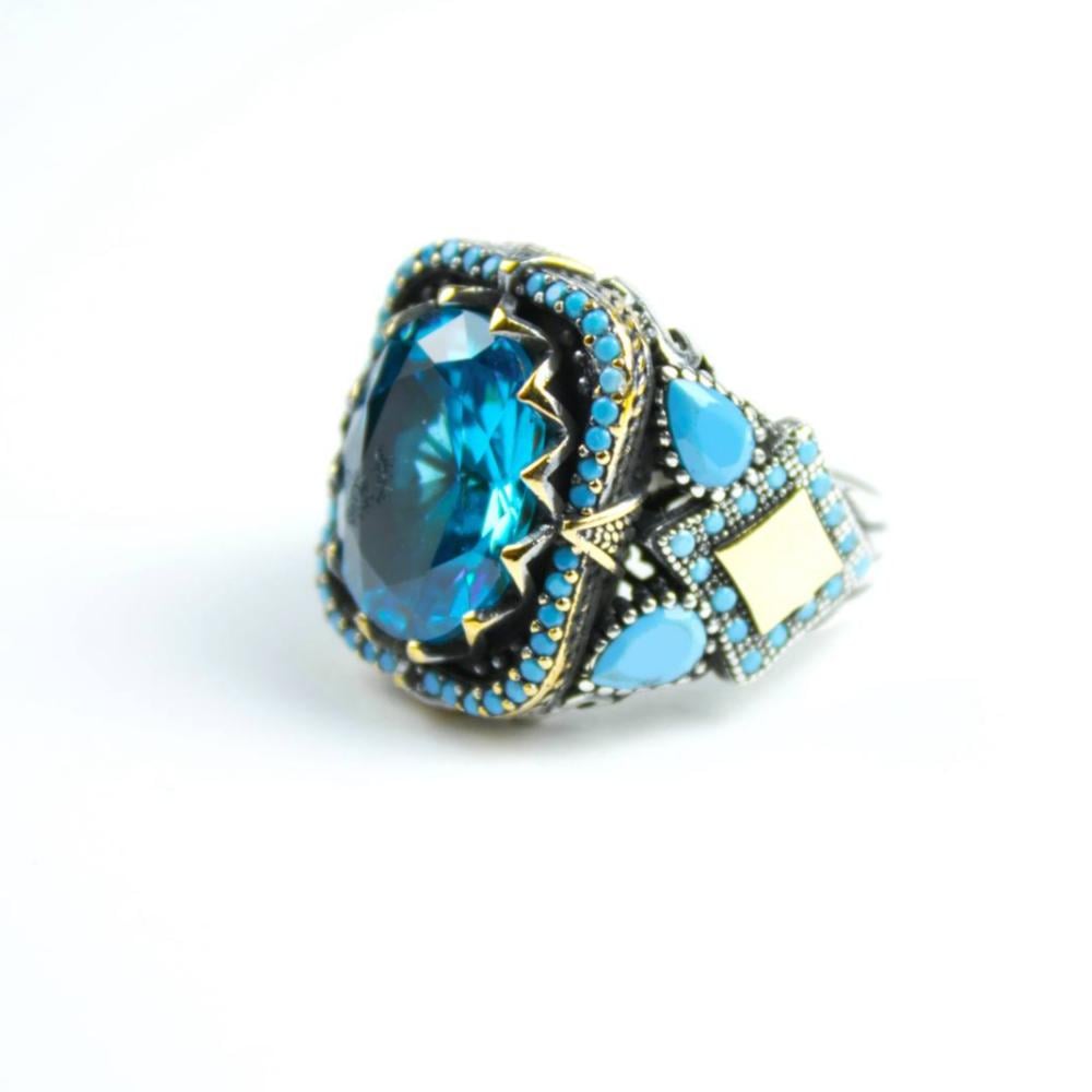 خاتم فضة عيار 925 تركي حجر شفاف باللون الأزرق الفاتح